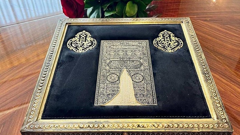 Hadiah tersebut adalah kotak hitam yang berisi potongan kain Ka’bah serta satu replika kunci Ka’bah.